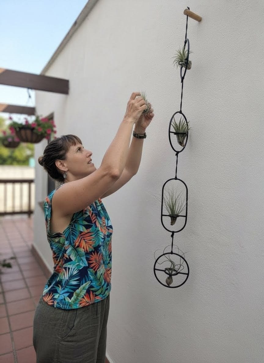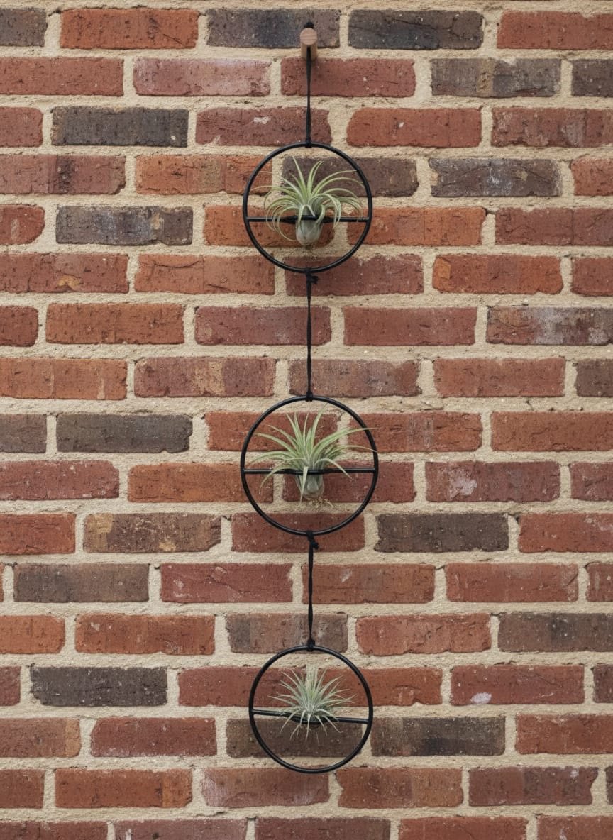 Triple belleza en altura. Crea tu galería botánica en altura con este trío artesanal inspirado en la naturaleza. El Trío Pack Air Plant incluye tres colgadores para plantas de aire de diseño minimalista y atemporal, elaborados en hierro. Además cuenta con el soporte de lineas simples y minimalistas para colgarlo de la pared. Puedes elegir entre los modelos Oh! Air Plant y Uh! Air Plant, o combinarlos para lograr la composición  que mejor se adapte a tu estilo. Estas piezas están diseñadas para realzar y hacer lucir las curiosas formas que presentan las tillandsias o plantas de aire. Su uso es versátil tanto para Interior como exterior.